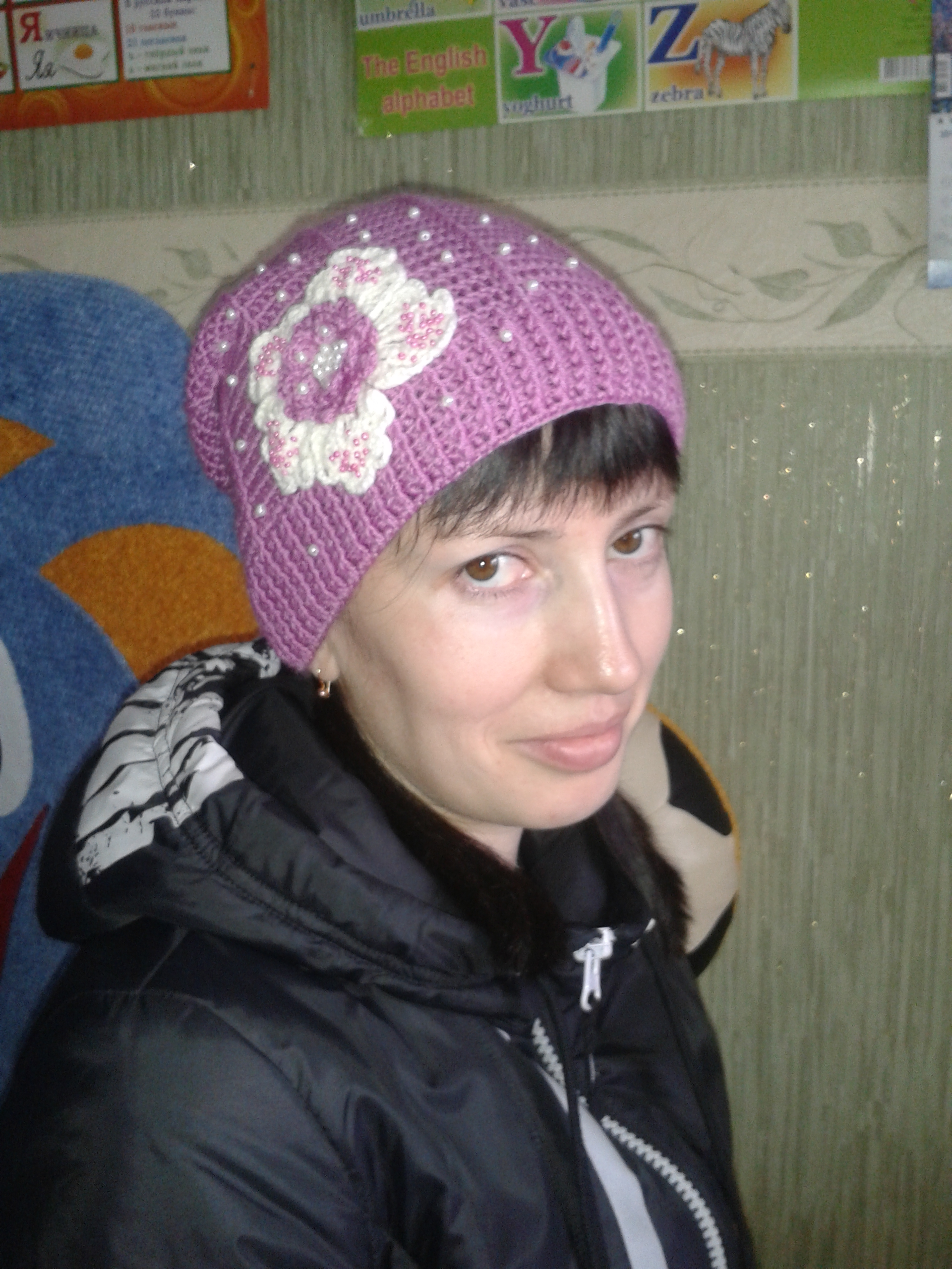 [b]Нюта[/b], Аня, классная шапка! мне очень понравилась, вариант с цветочком интереснее!! +<<-<-+<<-<-+<<-<-