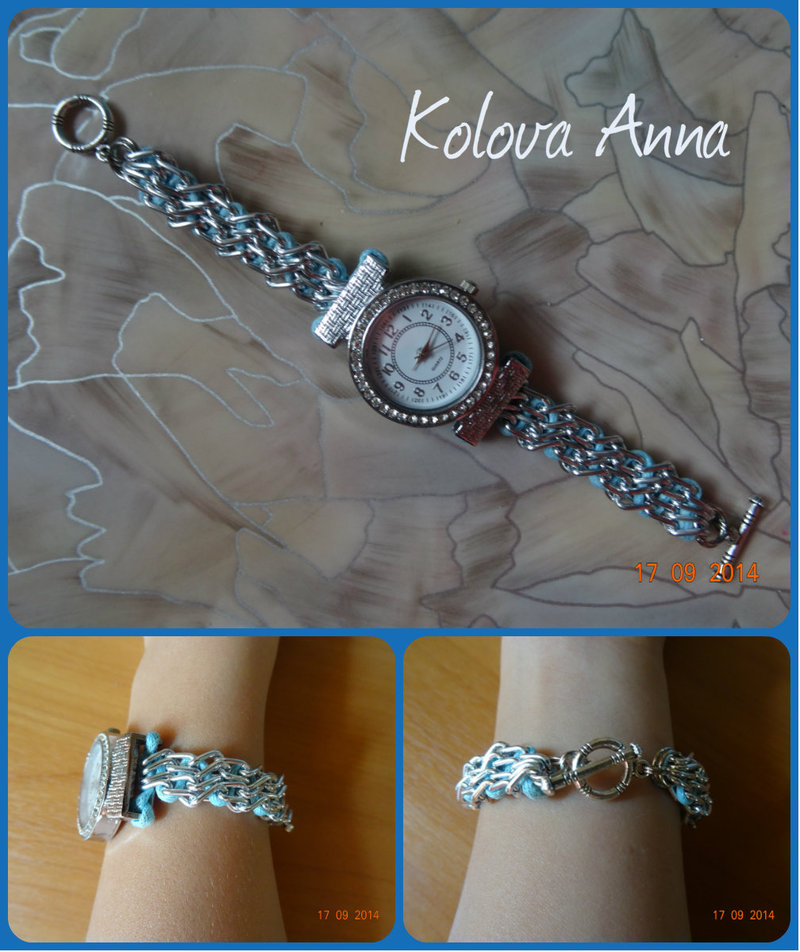 Новая жизнь старым часам)) Ремешок из декоративной цепочки и вощеного шнура