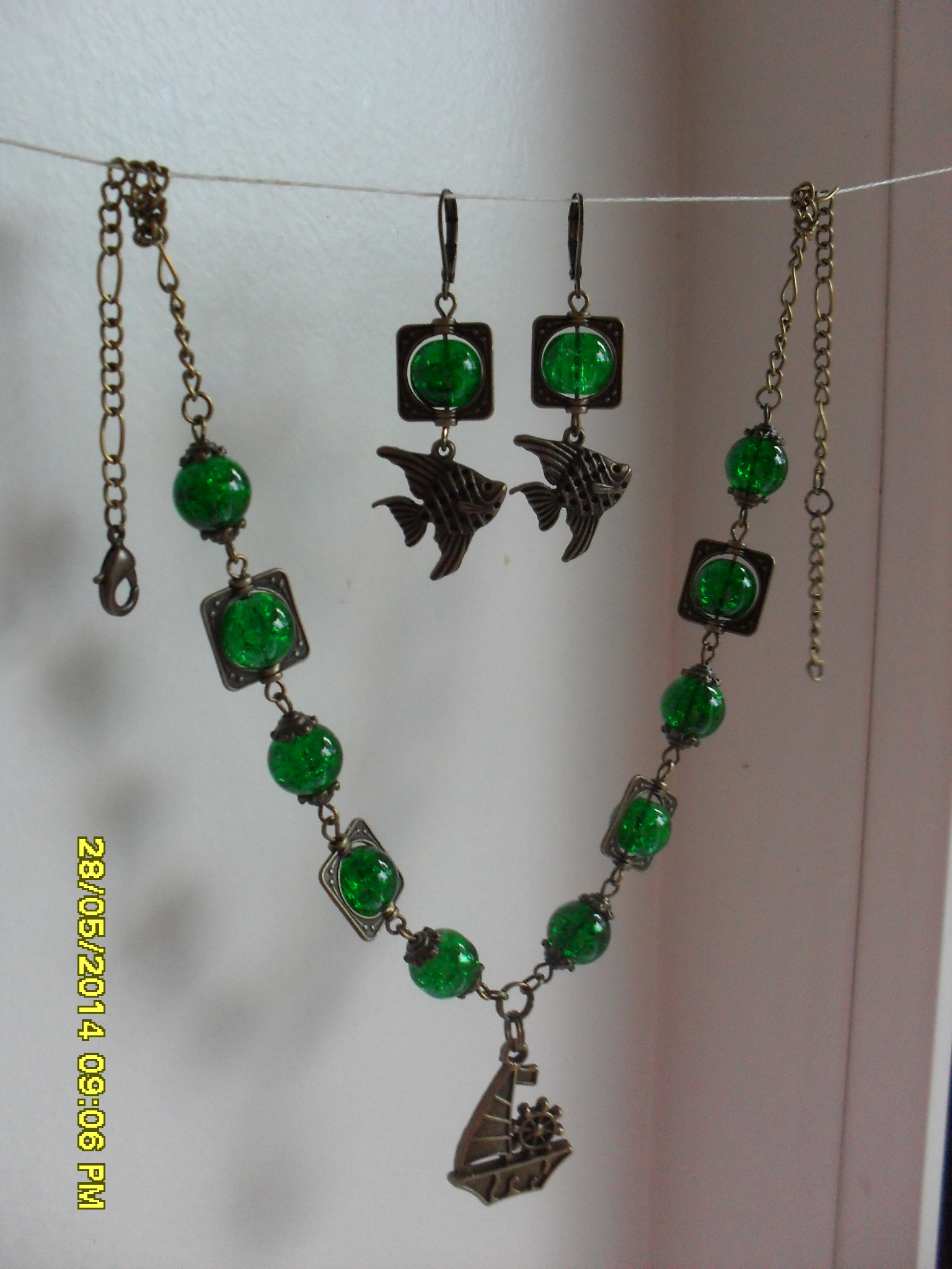 Бирюза в бронзе. Стекло, металл. Длина цепочки 46 см.