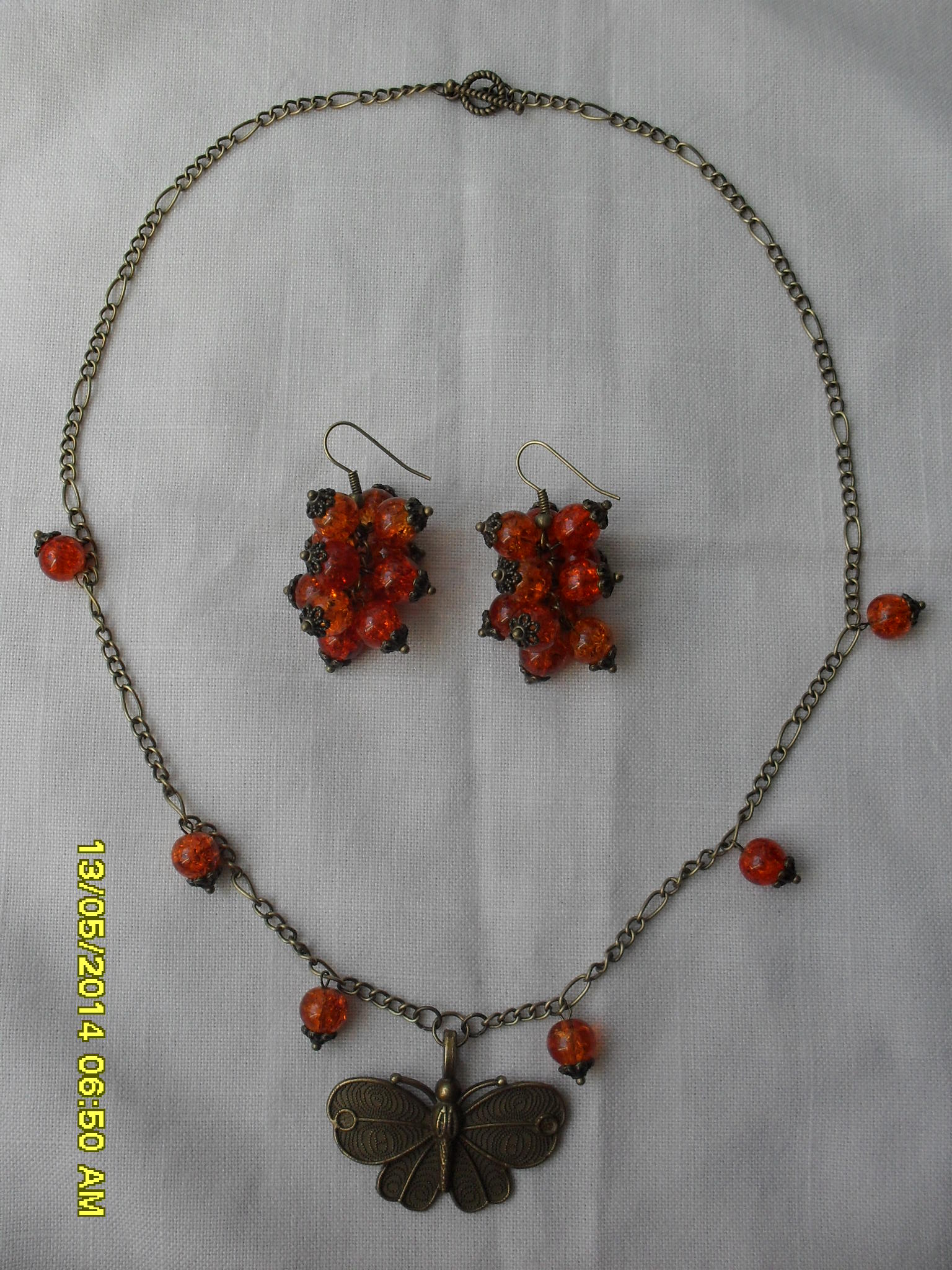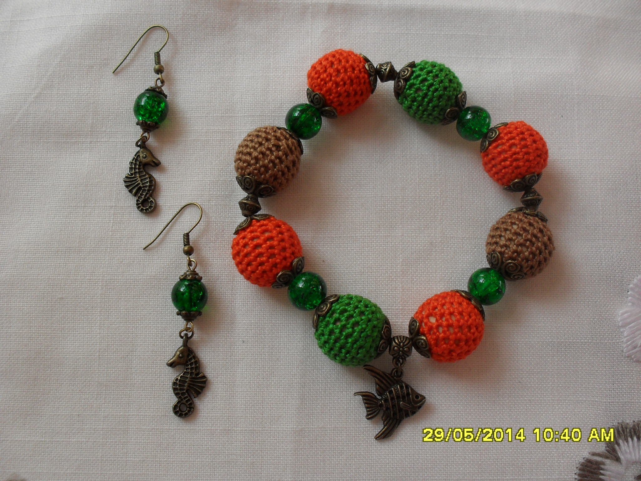 Комплект "Солнечный свет". Дерево, стекло, хлопок, металл. Длина бус 68 см.