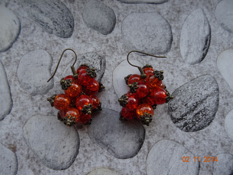 Серьги "Янтарный свет". Стекло, фурнитура под бронзу. Начальная цена 200 руб.