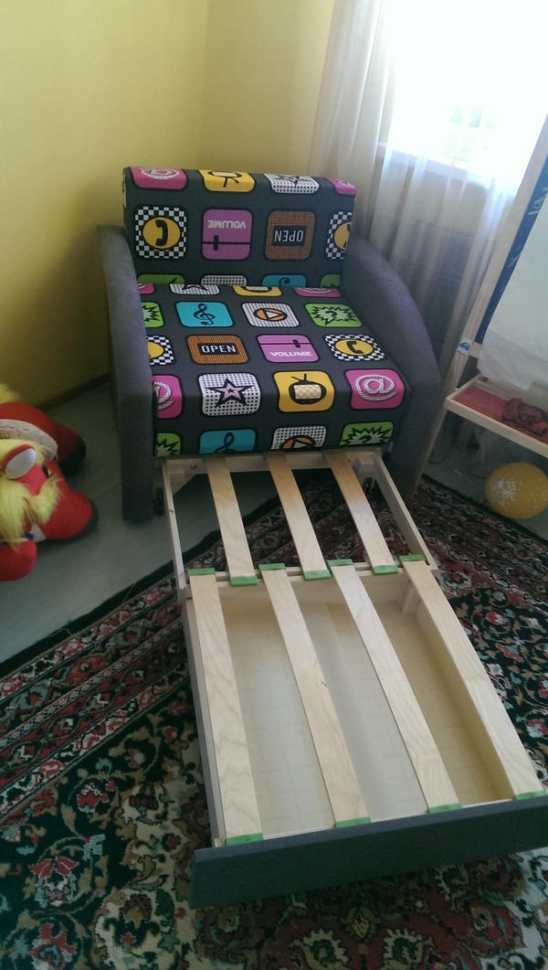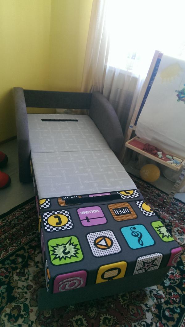 фото диванчика, разложенного наполовину. Мы сейчас так спим