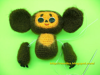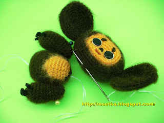Голова и ручки у нашего Чебурашки будут подвижными.