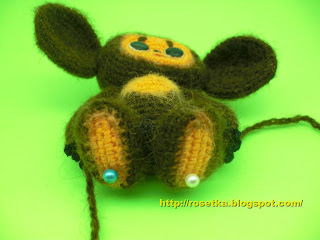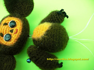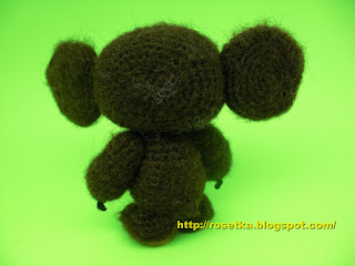 Они у Чебурашки короткие и немного толстоватые, поэтому вышить их нужно той же пряжей, которой вязали тёмную часть головы.