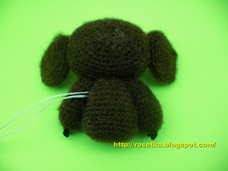 Провязать его нужно будет только после того, как оформим полностью мордочку, сделаем утяжки для глазок, будет вышит рот, нос и брови все операции производятся через это отверстие.