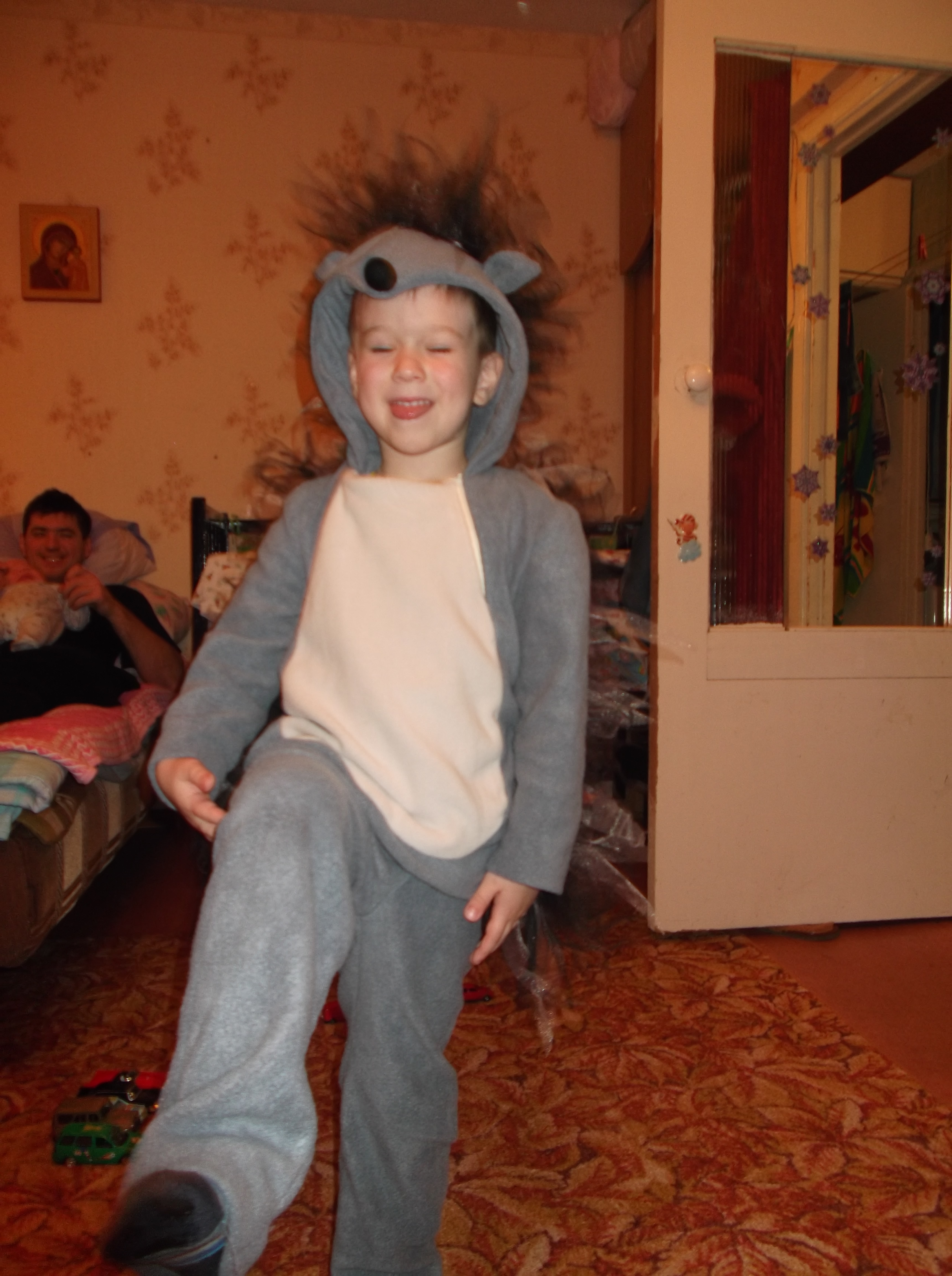 [img]/media/forum/737483306.JPG[/img]На утреннике в садике детки должны быть в костюмах зверят. Я Лёше сделала костюм ёжика:
