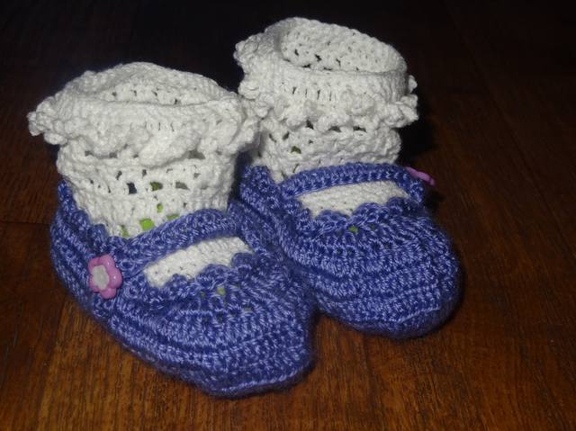 пинетки для малышки ( внтури проглядывает зеленый флис, положила просто для придания формы)