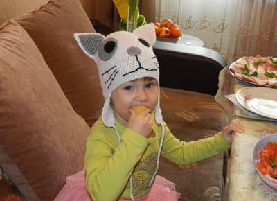 нам тут бабушка связала шапку кошку. но смешная она )) она приезжала когда я ей разок показала твою шапку,которую ты в подарок вязала. она по памяти и связала. ушки какие то как у хрюшки мне кажется. чуток переделать надо