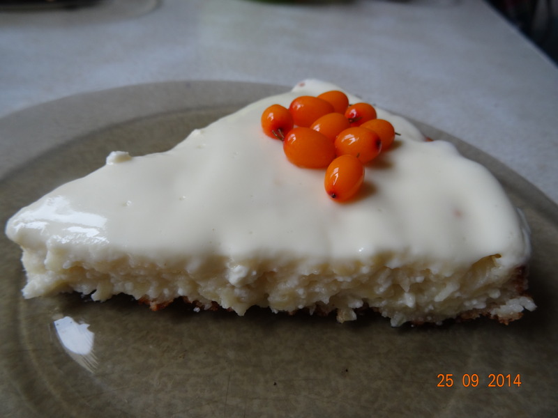 Творожная запеканка с тертыми яблоками, сверху сгущенка + сметана