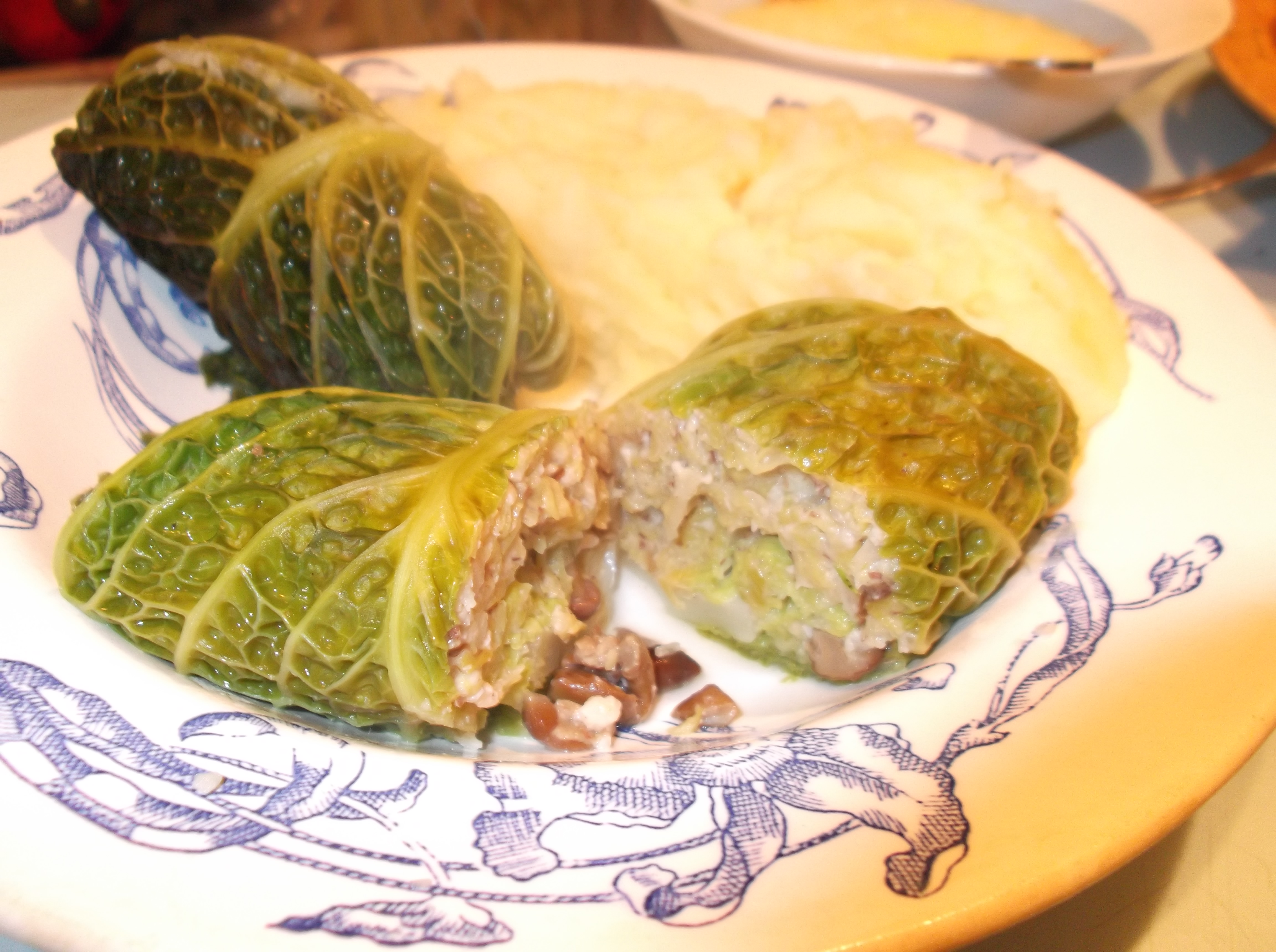 У нас сегодня голубцы овощно-грибные. А к чаю шоколадные блины.
