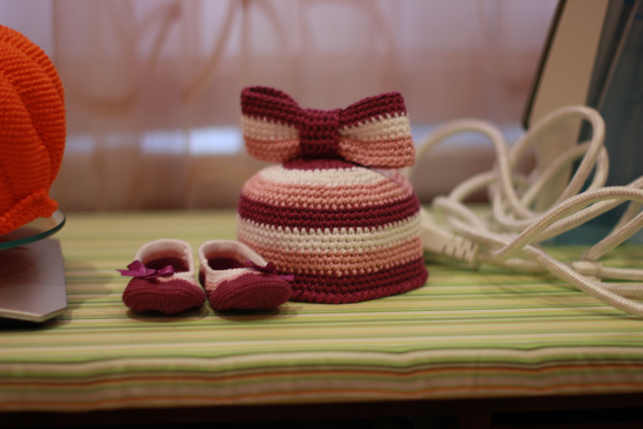 фото на хозяйке будет позже, когда я свяжу в комплект к шапке какой-нибудь сарафанчик или туничку