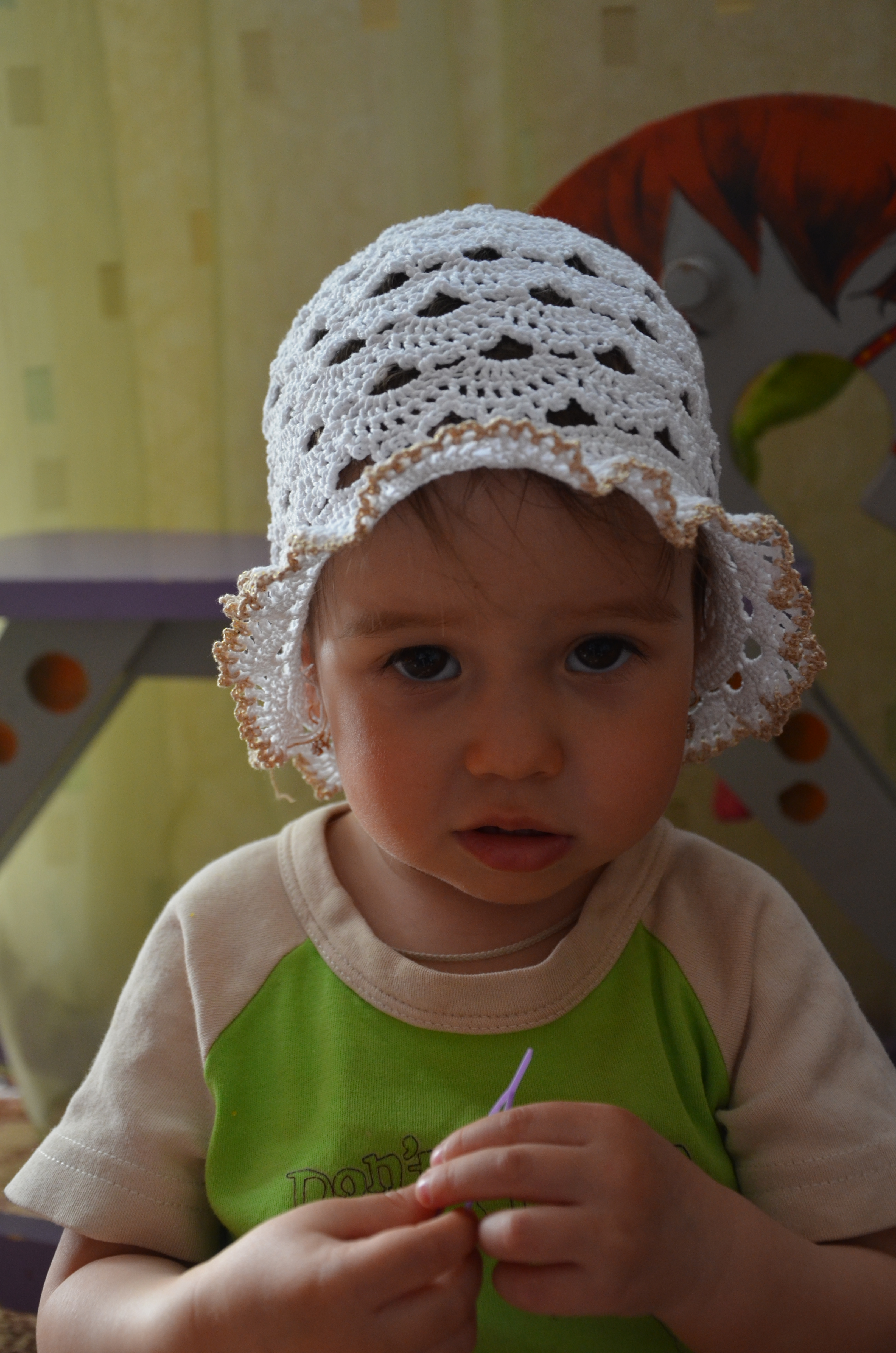 и панамку младшей,не украсила ещё. в планах опять корона  . старшая тоже требует корону, так что сейчас и её такую довязываю.