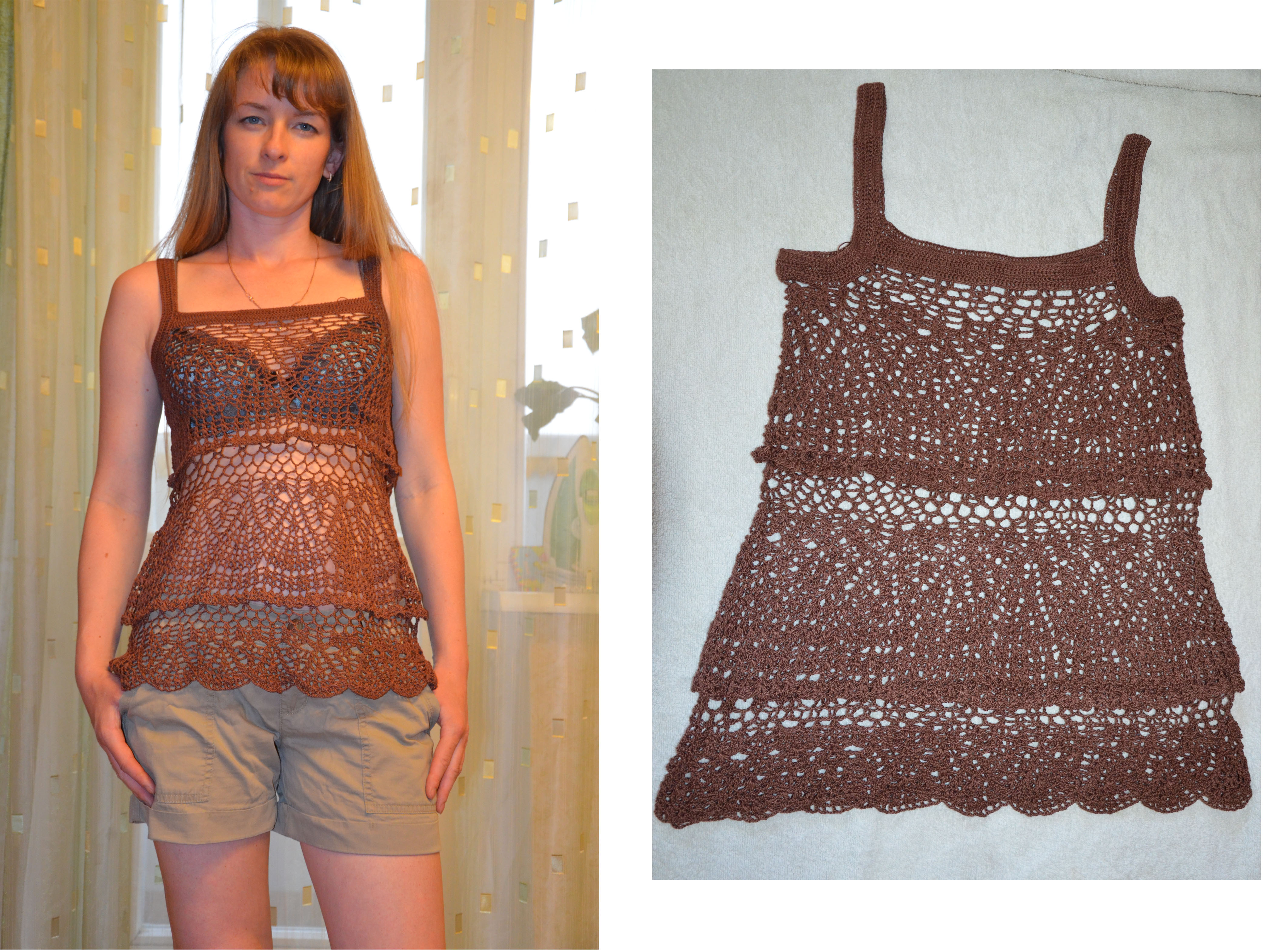 фотографировала сбоку и какой то кривой получился. вторую лямочку вязала после стирки.