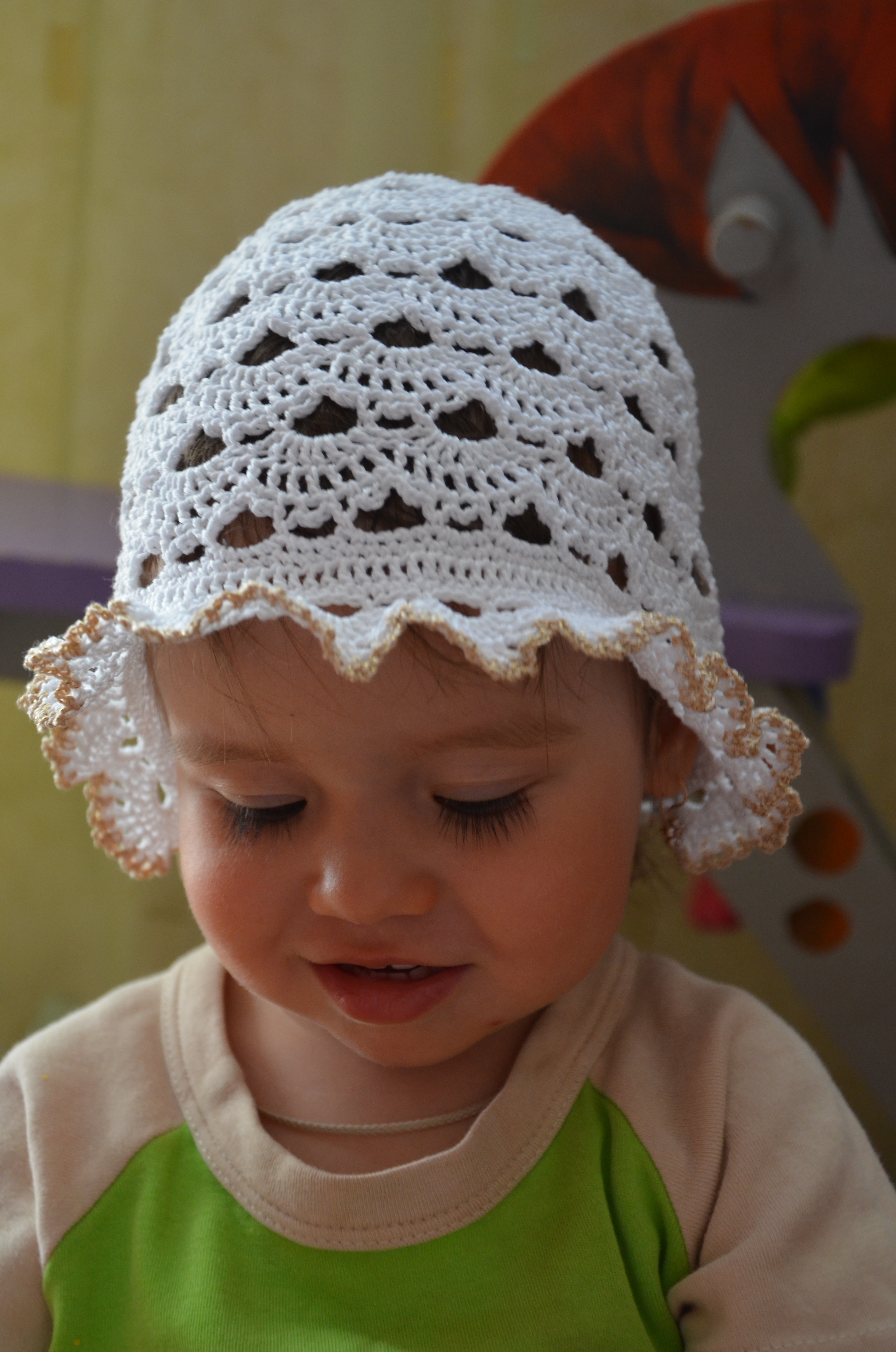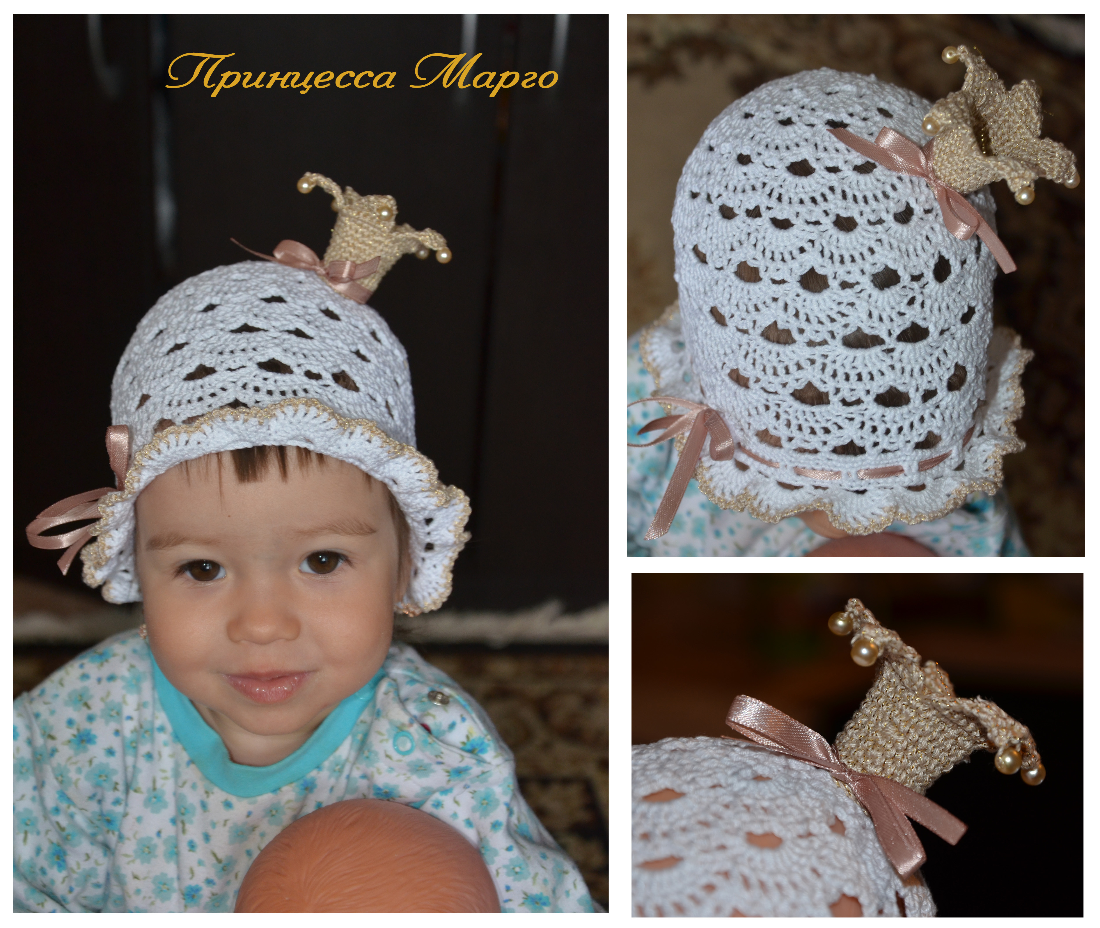 и панамку младшей,не украсила ещё. в планах опять корона :-0. старшая тоже требует корону, так что сейчас и её такую довязываю.