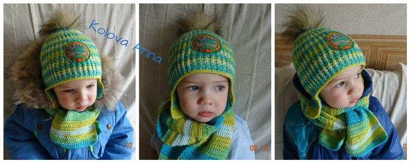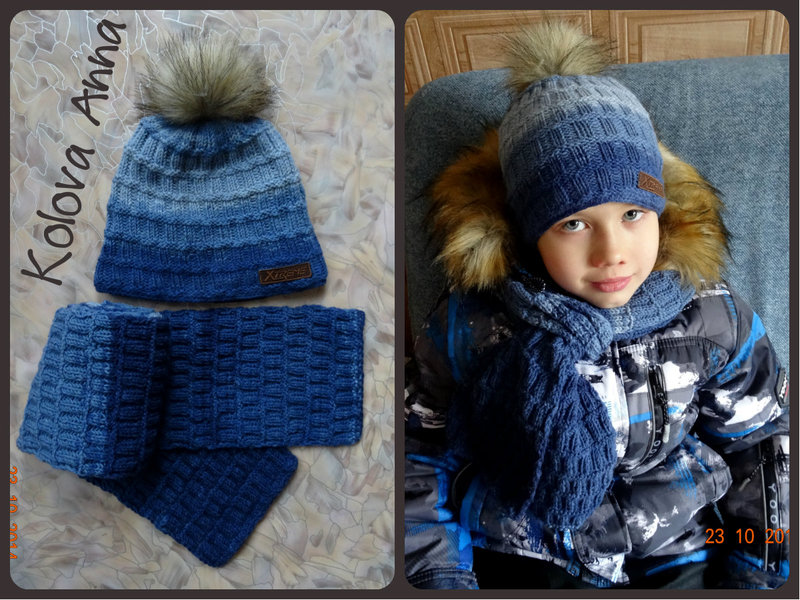 Луся, спасибо  Шапка связана резинкой - выпуклые и вогнутые полустолбики с накидом, шарфик - полустолбики с накидом