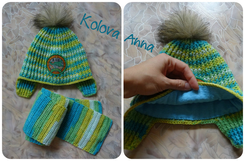 Долго вынашивала идею, которая воплотилась вот в это:) Связано крючком, подклад трикотаж с начесом, помпон из искусственного меха...