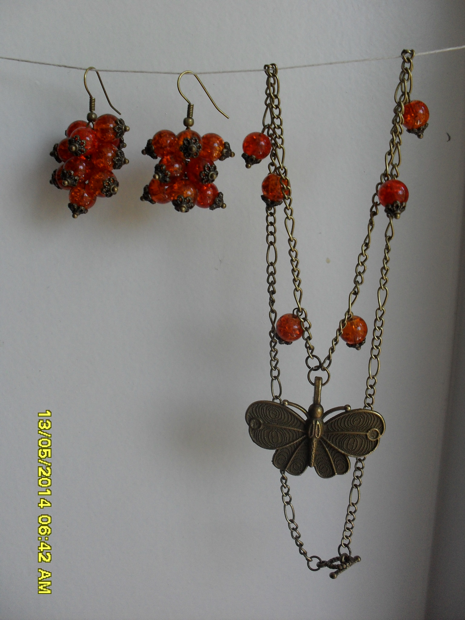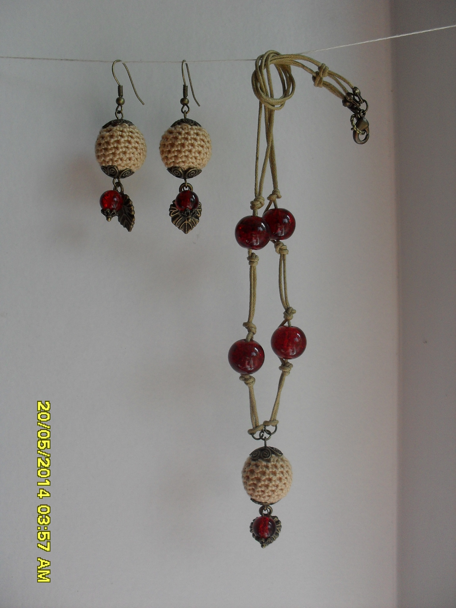 Комплект "Солнечный свет". Дерево, стекло, хлопок, металл. Длина бус 68 см.