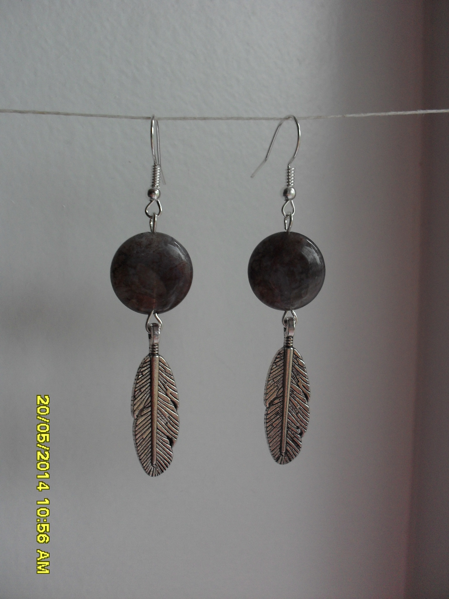 Серьги "Перышко". Натуральная яшма, посеребренные швензы.