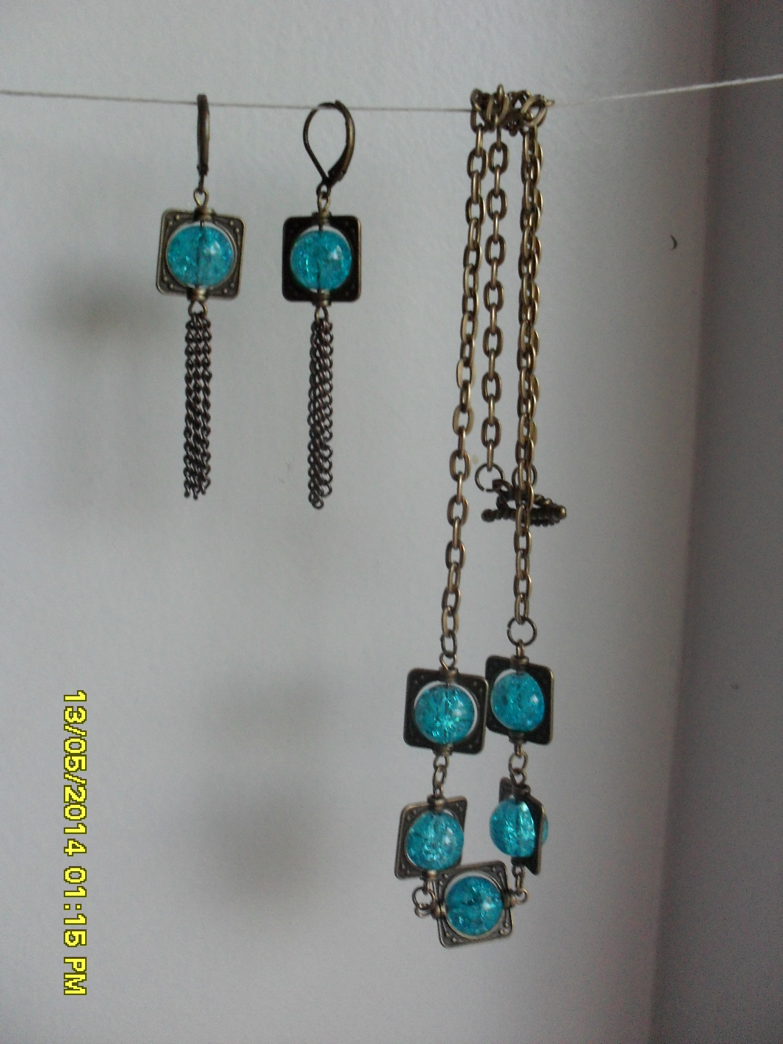 Бирюза в бронзе. Стекло, металл. Длина цепочки 46 см.