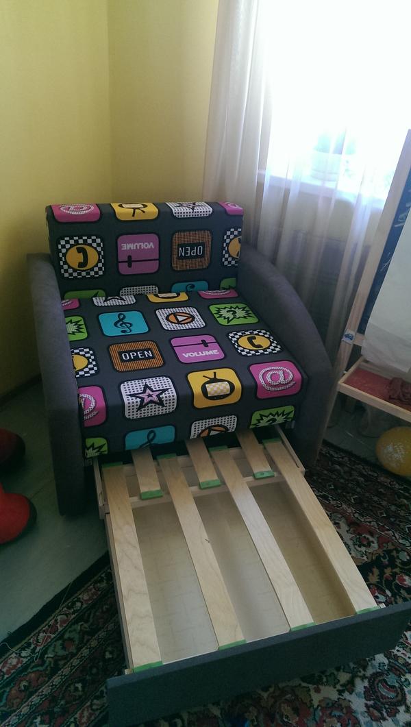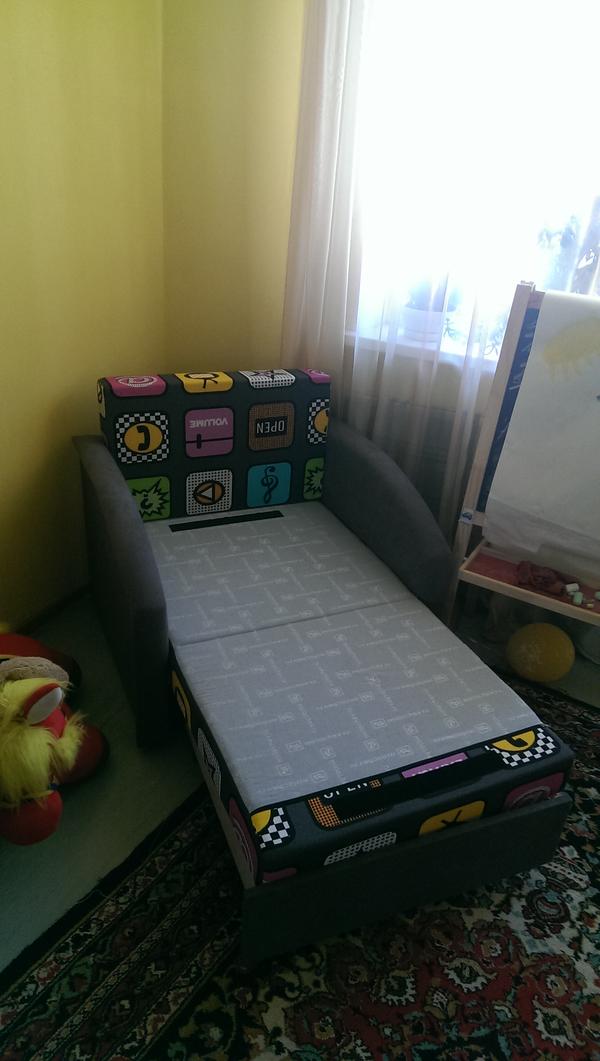 фото диванчика, разложенного наполовину. Мы сейчас так спим