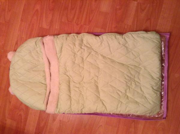 Конверт зимний для малыша, натуральная шерсть, светло-зеленого цвета, один замок сбоку, в отличном состоянии. 400 руб