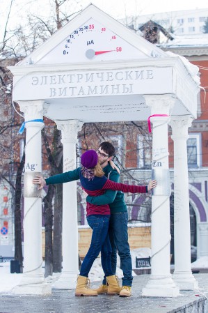 Как раз подошла парочка, они взялись за руки, а свободными руками дотронулись до колонн, и стрелка начала отклонятся, а при поцелуе она еще больше зашкалила =). А, чуть не забыл, кто в арке стоит, им стрелки же не видно, поэтому результат замера, сообщает голос из неоткуда арки.