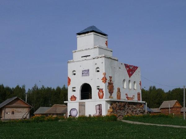 «Музей Русской Печи» — комплексная экспозиция. Она образована зданием самой большой в мире русской печи и девятью избами разных регионов Европейской части России.