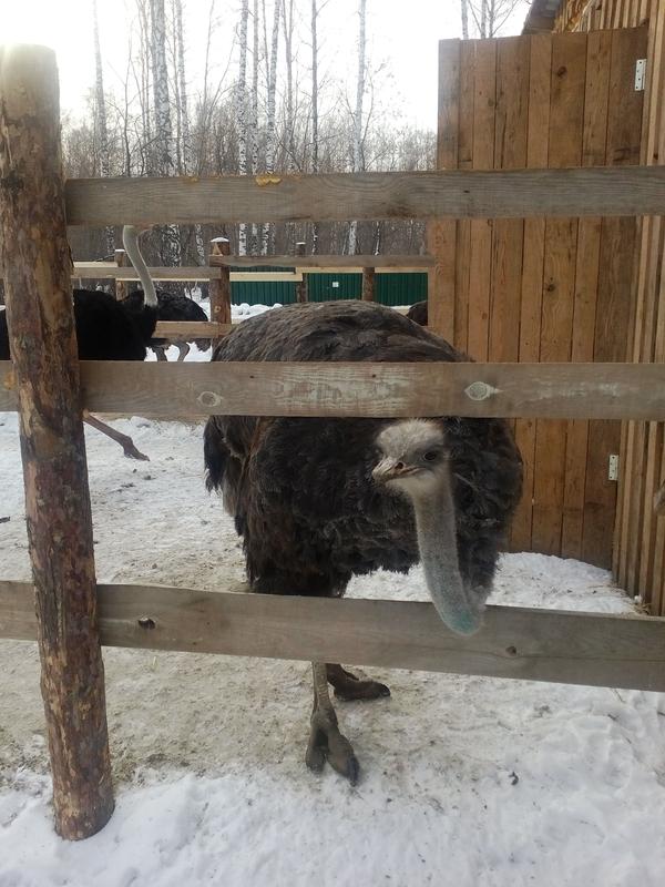 После пополнения сил время было уже 16 ч, а билеты на обратный путь были на 18 ч, поэтому решено было на такси поехать на страусиную ферму. Тут вообще получилось "кино", т.к. операторы такси Нон-Стоп доказывали мне, что у них в городе нет такой фермы!А там, напротив дома № 125 по ул. Березовая, есть даже указатель! От центра до места такси ехало через весь город (пешком шибко далеко будет) и обошлось в 120 руб.